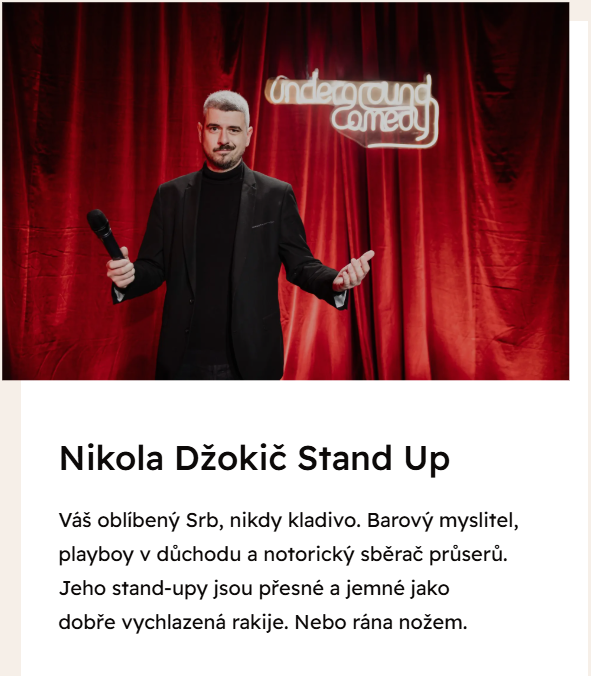 - večerní Stand Up vystoupení pánů Plhoně a Džokiče